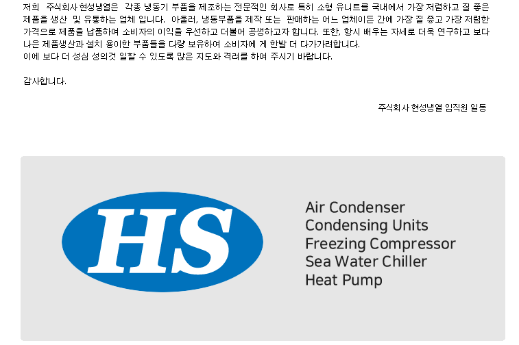 Copyright Hyunsung Cold-Hot Co.ltd 2018. All Rights reserved.