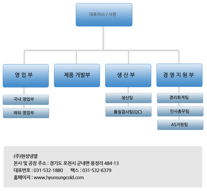 상호명: (주)현성냉열 대표자 : 한성호 사업자등록번호: 132-86-25336 본사/공장 : 경기도 포천시 군내면 용정리 484-13